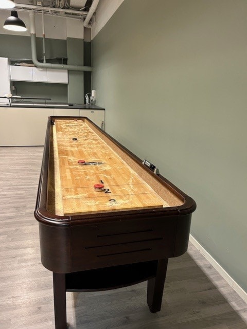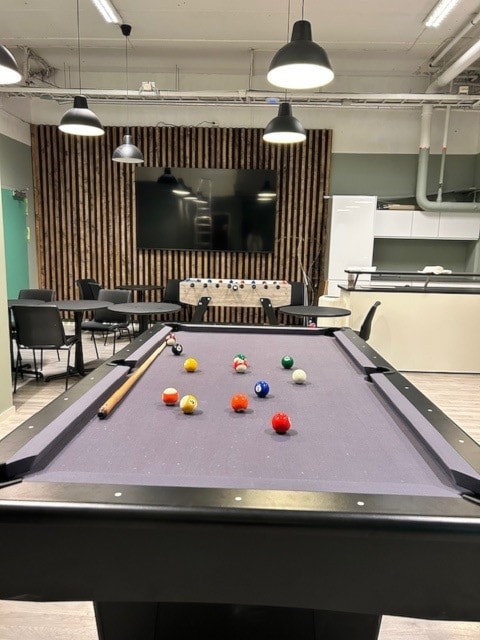 Spillrom med biljardbord, shuffleboard, fotballspill, Playstation FIFA2025, bordtennis, dart, 98" storskjerm for streaming mm. Bord og stoler for inntil 24 pers. Dekketøy tilgjengelig. Prisliste kr. 500- pr time. Pris fredag og lørdag 18.00-24.00 er kr. 2.500,- Pris for bursdag 2 timer inklusive cageballhall kr. 1.600,- (sjekk at cageballhall er ledig og må bestilles separat). For bedriftspakker inkl. catering og andre spørsmål ta kontakt med Magne tlf 95755438 eller Karoline tlf 45438417